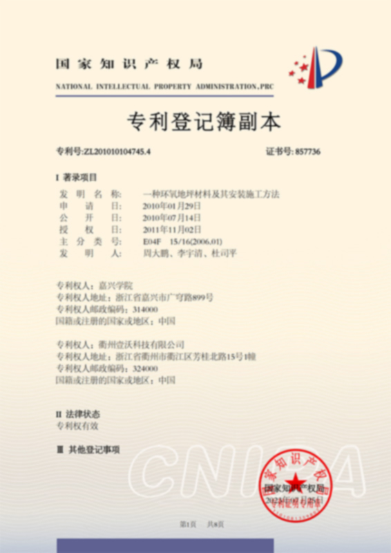耐磨層:加入特有防/導靜電配方與環氧樹脂有效結合,達到長久有效防/導靜電功能